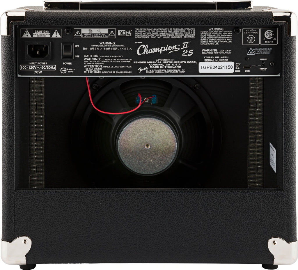 Champion II delivers world-renowned Fender clean and overdrive tones plus an assortment of British and modern distortion flavors. From jazz to country, blues to metal, it’s easy to dial up the right sound. There’s also a built-in effects selection including reverb, delay/echo, chorus, tremolo, Vibratone, and more. Delay times and tremolo speeds can easily be set with the TAP button to match song tempos.