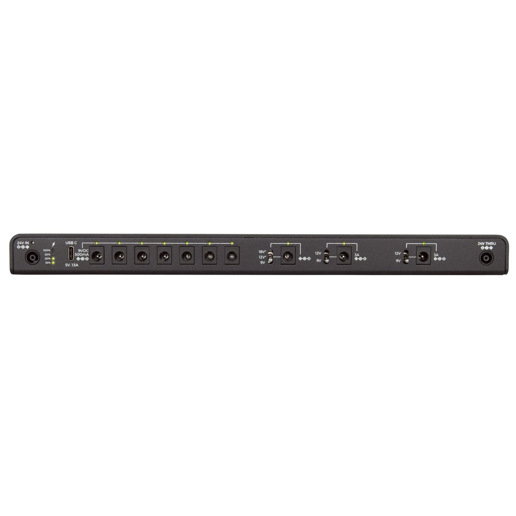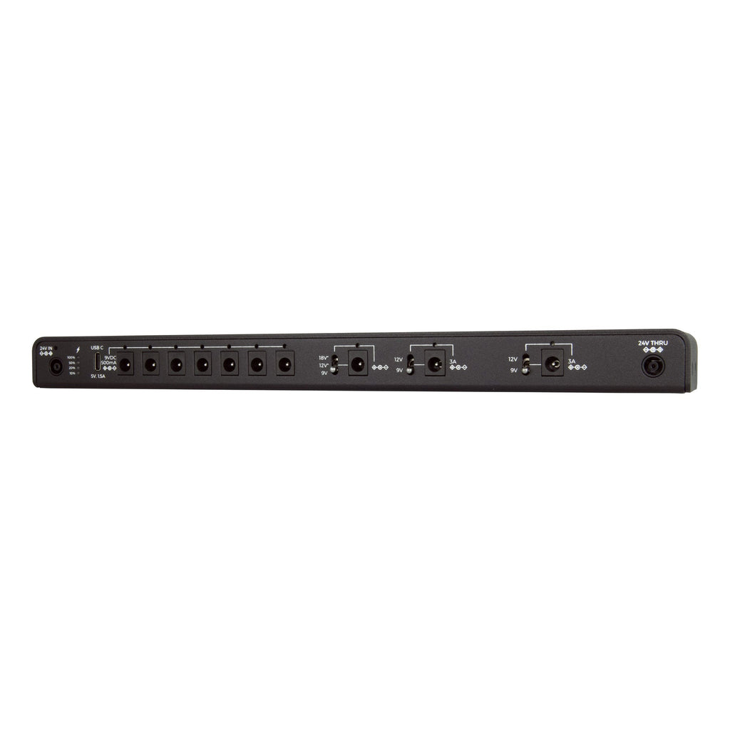 The Canvas Power HP Plus is a perfect power solution for hybrid rigs running pedals, modelers, and/or multi-effect pedals allowing you to power the thirstiest of pedals with two, 3A (three Amp, or 3,000mA) outputs. The HP Plus also has 7 isolated power outputs delivering up to 500mA of clean power at 9V and a 9/12/18V variable output. The 3A outputs can switch between 9V and 12V to power high-voltage pedals.
