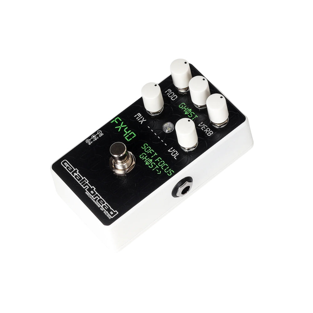 The newest feature on the Soft Focus Ghost weaves a phase shifter into the mix, replacing the Symph knob that we originally added into the Soft Focus where once was none. The new Ghost control adds in a nontraditional phase shifting algorithm that serves as an enhancement tool rather than the gooey modulation that completely overtakes an entire signal. The rate and depth of this phase shifter are tied to the same knob, such that quicker speeds are deeper than the slower settings. The Mod knob now acts as a master depth control for all modulation, and the Ghost still includes chorus, plate reverb, input gain and full wet-dry mix capabilities.