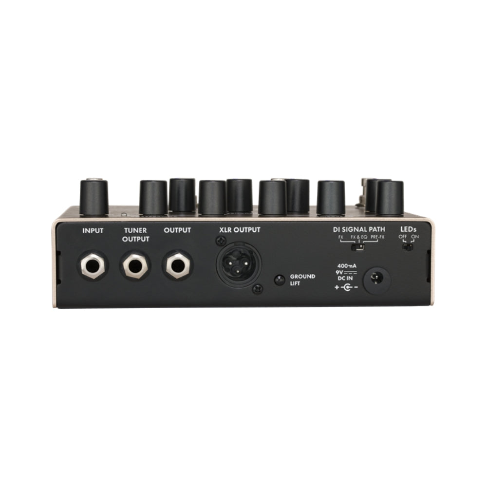 Bass multi-effect pedal. Onboard compressor, overdrive with speaker emulation and 3-Band EQ. Effect order toggle switch. Direct Output. LED-backlit knobs.