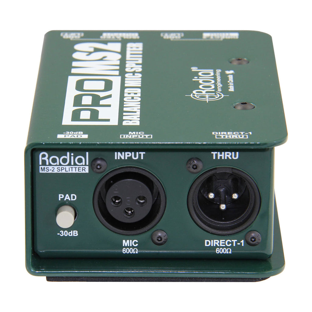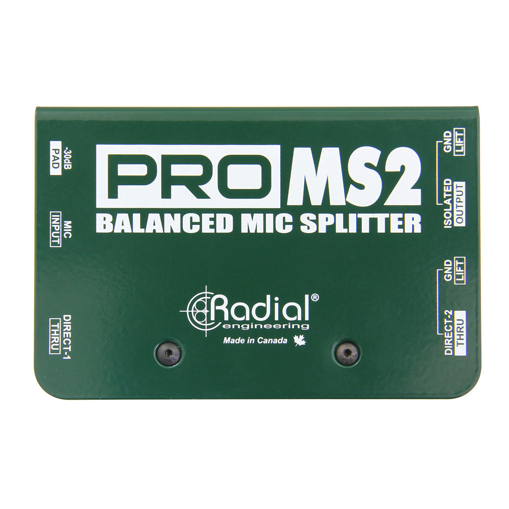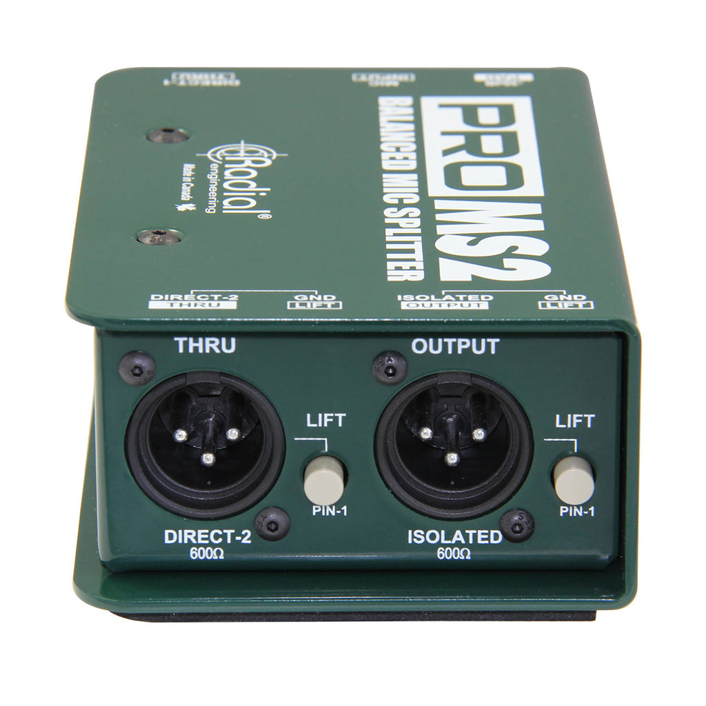 The ProMS2 is a mic splitter designed to split a single source to multiple destinations simultaneously without signal degradation or noise. A high quality Eclipse transformer inside provides galvanic isolation to eliminate hum and buzz from ground loops, while delivering a wide frequency response and low distortion. Ground lifts on the outputs help further reduce noise, while an input pad allows line-level sources to be connected as well. The ProMS2 can be rack mounted for touring and installation purposes, with up to eight fitting in the Radial J-Rak.