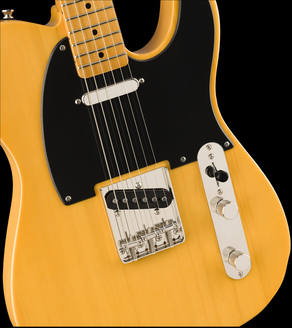 A celebration of the birth of the Tele in the early 1950s, the Classic Vibe '50s Telecaster creates incredible tone courtesy of the Fender-Designed alnico single-coil pickups. Player-friendly features include a slim, comfortable "C"-shaped neck profile with an easy-playing 9.5"-radius fingerboard and narrow-tall frets, as well as a vintage-style Telecaster bridge with barrel saddles and string-through-body design. This throwback Squier model also features 1950s-inspired headstock markings, rich-looking nickel-plated hardware and a slick vintage-tint gloss neck finish for an old-school vibe.